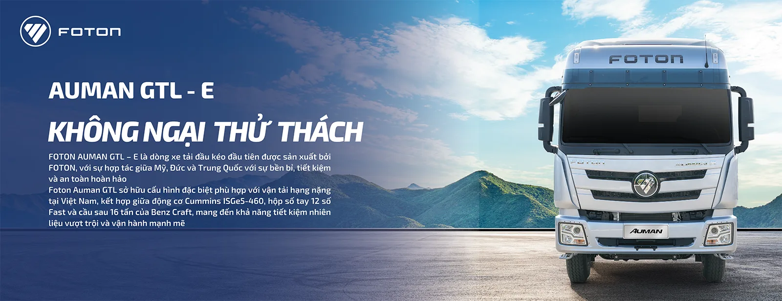 FOTON AUMAN GTL – E là dòng xe tải đầu kéo đầu tiên được sản xuất bởi FOTON, với sự hợp tác giữa Mỹ, Đức và Trung Quốc với sự bền bỉ, tiết kiệm và an toàn hoàn hảo