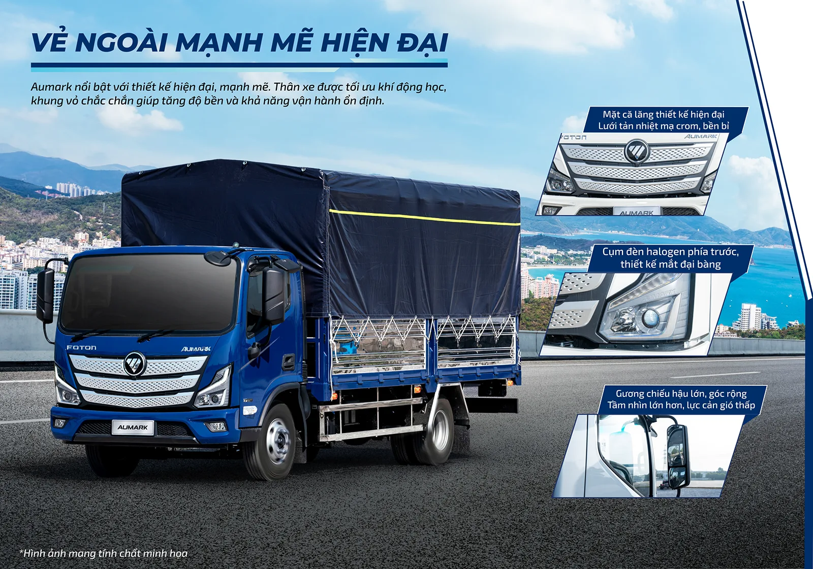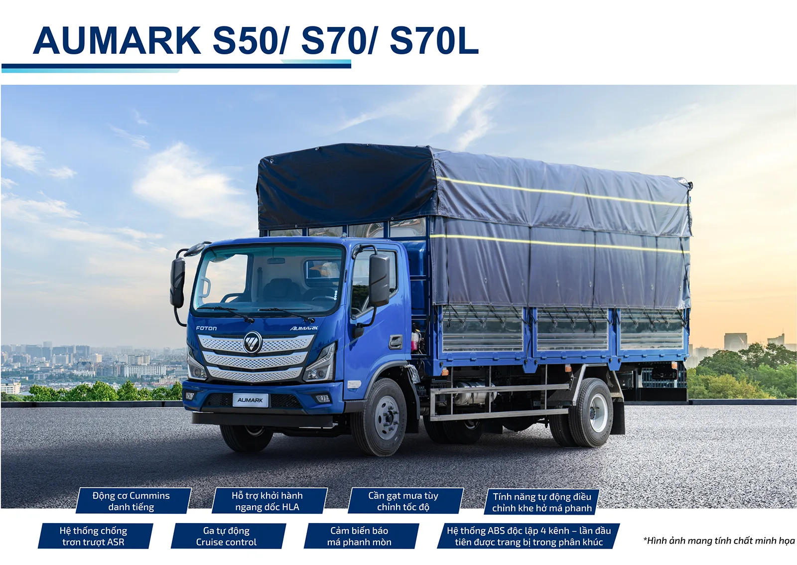Dòng AUMARK S70 / S70L là thế hệ xe tải hạng trung mới của Foton, được thiết kế như một “trợ thủ” vận tải hiện đại: mạnh mẽ, bền bỉ và cực kỳ thoải mái. Xe sử dụng động cơ Cummins kết hợp hộp số công nghệ ZF, mang đến sức kéo vượt trội và độ tin cậy cao trong mọi hành trình.