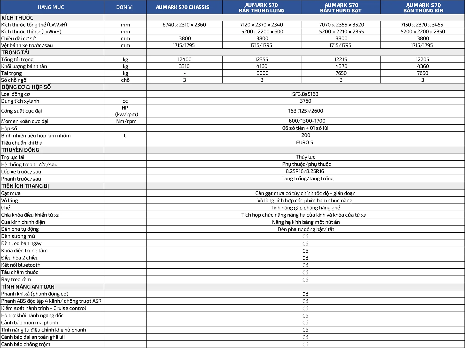 Với loạt ưu điểm nổi bật như sự êm ái khi vận hành, độ bền đáng tin cậy, cùng các tính năng thông minh và an toàn, AUMARK S70 / S70L dễ dàng đáp ứng nhu cầu vận chuyển đa dạng từ nội thành đến ngoại thành. Đây chính là giải pháp vận tải linh hoạt dành cho doanh nghiệp muốn tối ưu hiệu suất và chi phí.