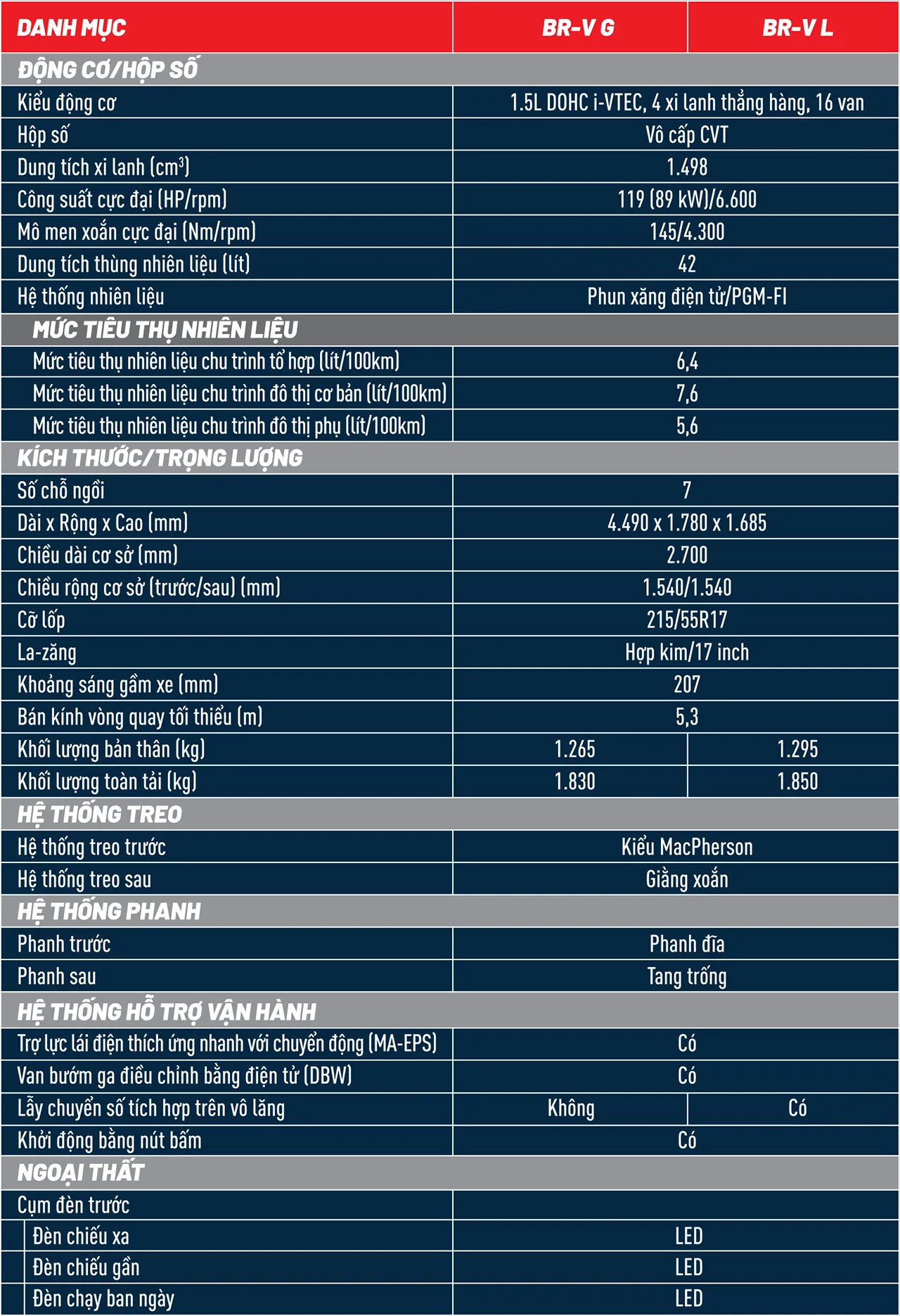 THÔNG TIN CHI TIẾT XE HONDA BR-V MỚI