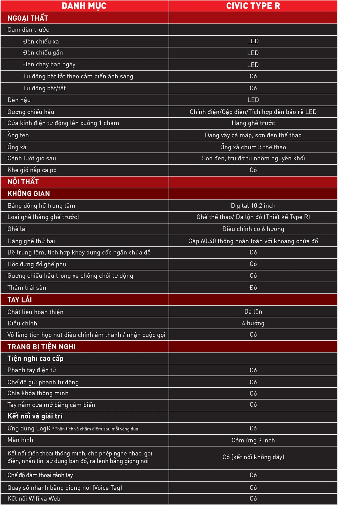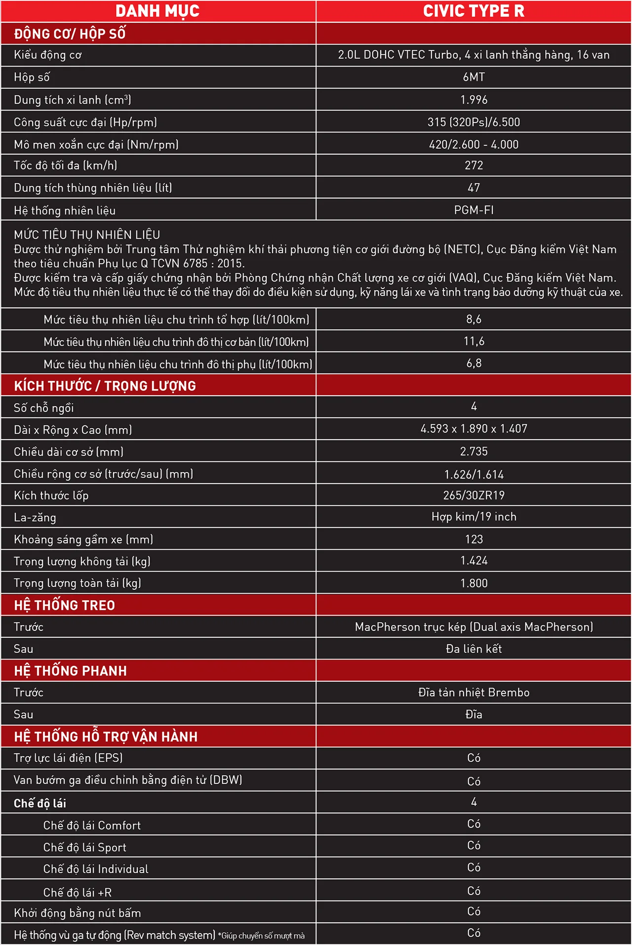 THÔNG TIN CHI TIẾT HONDA CIVIC TYPE R