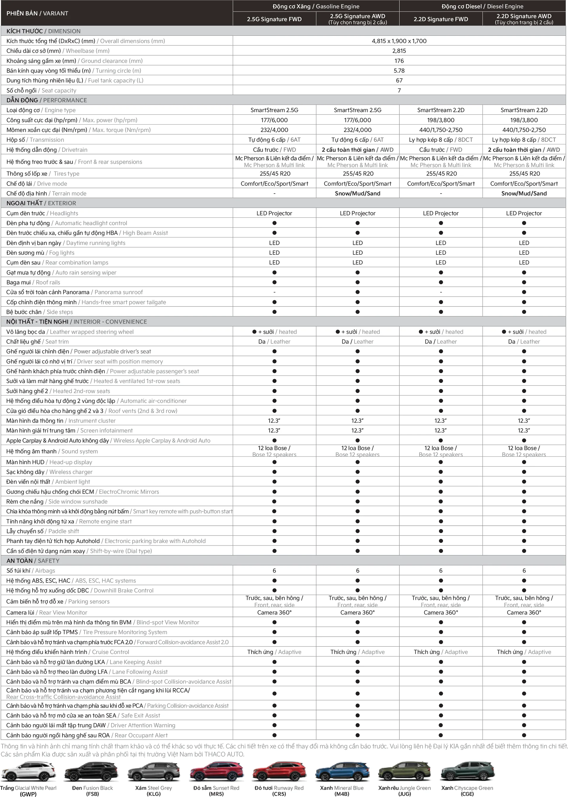Sorento 2.5G Signature FWD: 1,249,000,000VNĐ