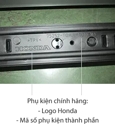 - Mặt dưới phụ kiện có Logo Honda & mã số phụ kiện thành phần trùng với mã trên vỏ hộp