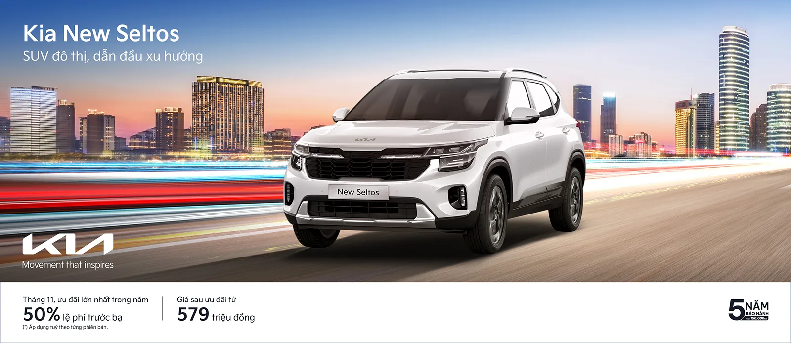 Kia Seltos – mẫu xe “smart SUV” mạnh mẽ và đậm chất thể thao, trang bị tiện nghi dẫn đầu xu hướng nhận được ưu đãi đến 59 triệu, tương đương 50% lệ phí trước bạ, sau ưu đãi giá bán chỉ từ 574 triệu đồng.
