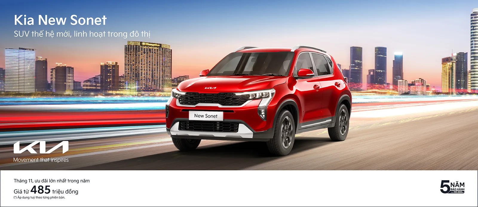 Kia Sonet - mẫu xe dẫn đầu doanh số trong phân khúc nổi bật với thiết kế thời trang, trẻ trung, linh hoạt trong đô thị với mức giá bán tốt nhất phân khúc. Trong tháng 11, mẫu xe được ưu đãi 30 triệu đồng, tương đương 50% lệ phí trước bạ, giá bán chỉ từ 485 triệu đồng.